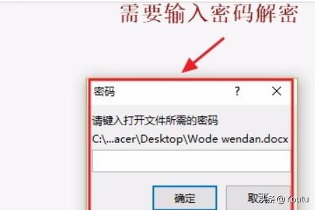1、下图就是我们给某篇文档加了密码以后,一旦有人或者我们自己点击想要打开的时候显示的内容,要求我们输入密码。