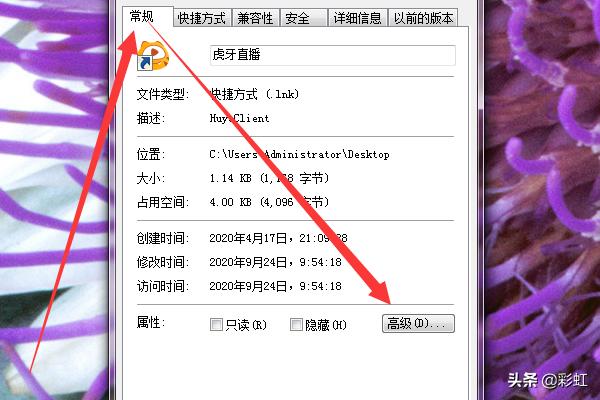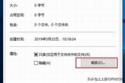2、操作二:加密文件夹 属性窗口中,常规选项卡下选择高级;操作图片如下。
