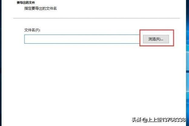 9、操作九:要导出的文件,指定要导出的文件名,点击浏览,打开文件,点击下一步,完成备份;