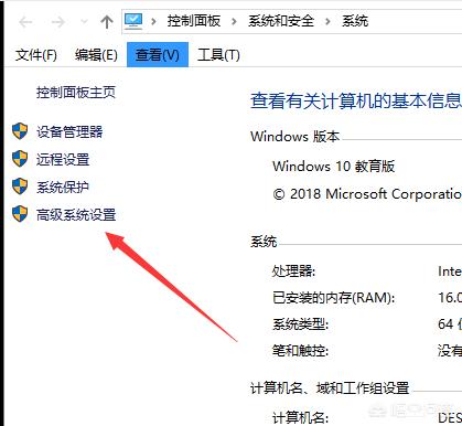 3、在新出现的界面里面的左侧,找到“高级系统设置”