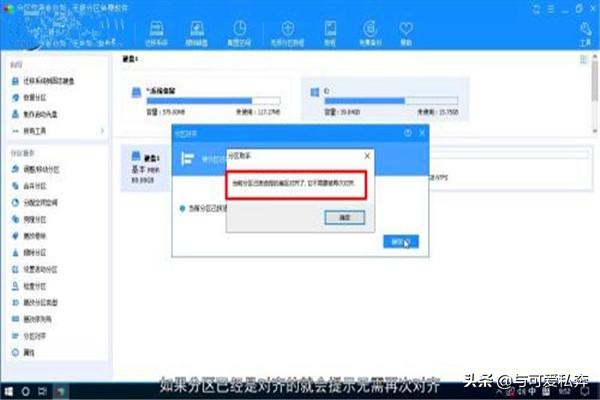 如果分区已经是对齐的,就会提示,无需再次对齐,如果没有对齐,则会继续完成对齐。