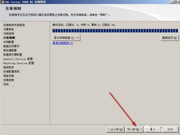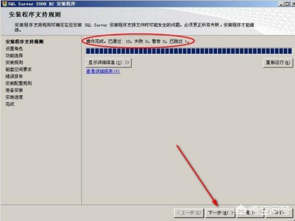 6、安装程序支持规则检测中,全部通过后点击“下一步”。