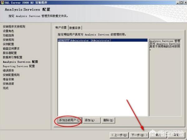 14、红圈部分所示,单击“添加当前用户”,确定后点击“下一步”。