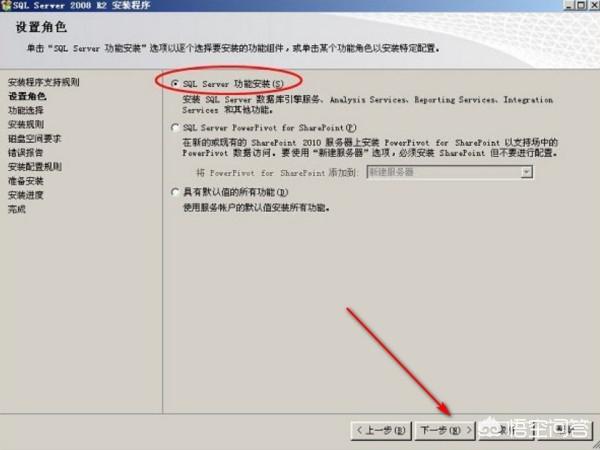 1、首先在电脑上打开SQL Server 2008的安装程序,然后出现对话框点击“下一步”。