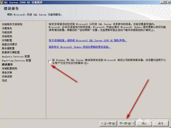 16、错误报告,如果不想把错误报告发送给Microsoft可以不选任何选项,点击“下一步”。