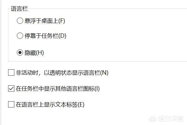 7、点击语言栏,可以看到语言栏是隐藏的,这导致输入法不见了。