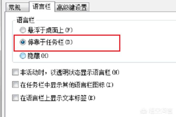 8、之后将语言栏勾选停靠于任务栏,点击确定。