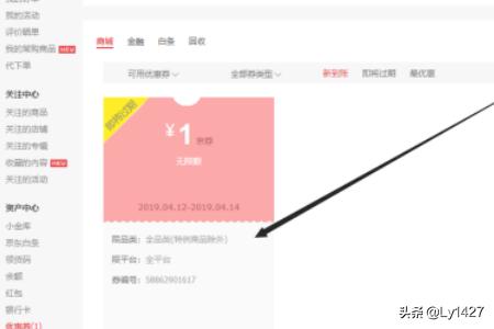6、然后在可用优惠券界面中便可以看到我们刚撤回的优惠券啦。