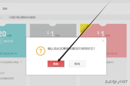 5、在弹出的提示框中,我们点击【确定】按钮,即可成功恢复已删除的优惠券。