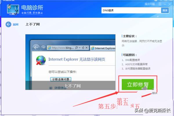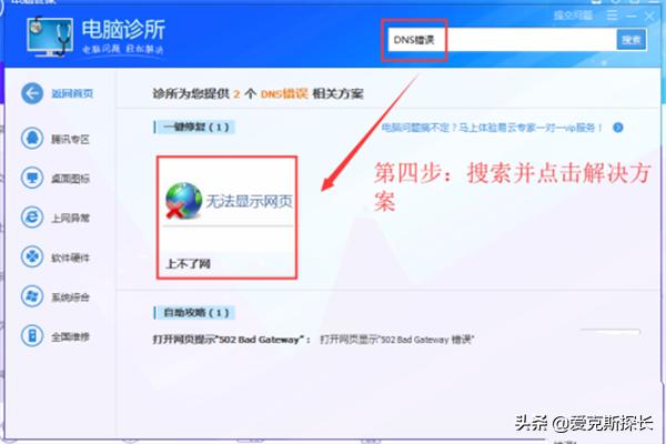 4进入“电脑诊断”以后在搜索栏中输入“DNS错误”。