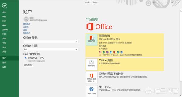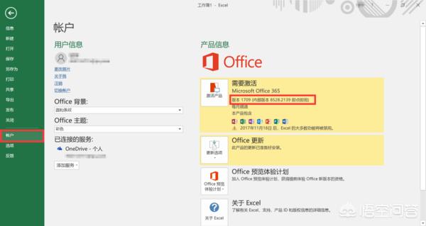 2、在激活产品按钮一侧可以看到Office版本号,下图中为1709,需要注意的是,以下激活方法仅限于1709及更新的版本。