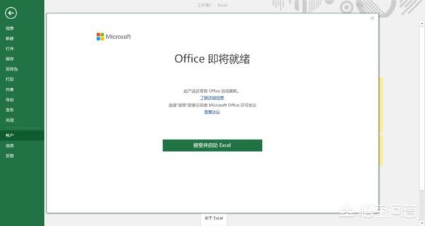 8、稍等一段时间后会收到提示“Office即将就绪”,点击“接受并启动Excel”即可完成激活。