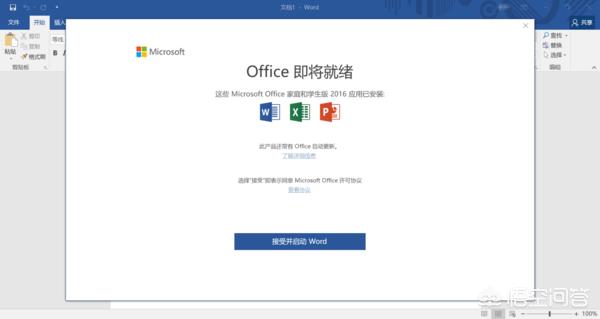 3.修复完成后再次打开任意Office软件,点击“接受并启动”。