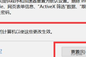 6返回到internet属性框,点击最上面一排最后一个高级的图标,鼠标点击右下角的重置。