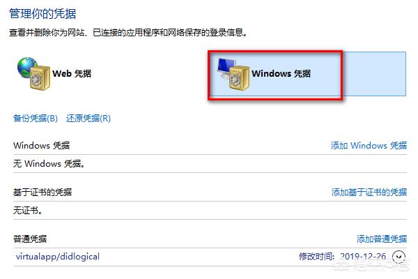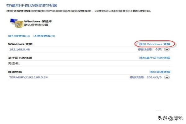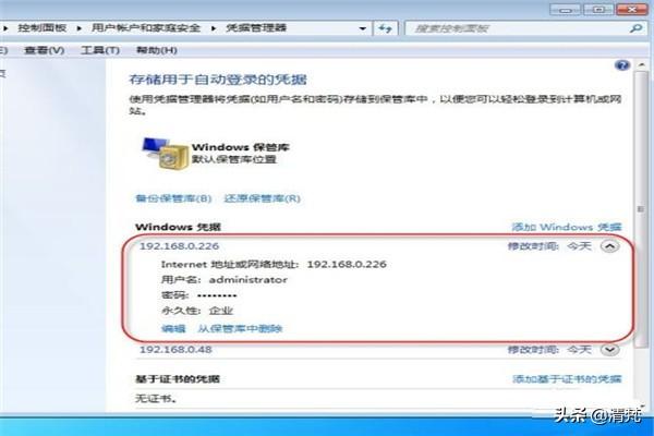 6.这样设置好后,可以在“凭证管理器”中查看到刚才添加的凭证。