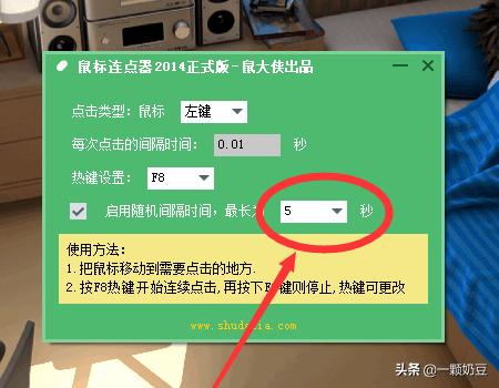 5、值得一提的是这款软件还自带随机点击功能,你可以设置一个最长时间间隔,然后每次点击的时间间隔都是随机在你设置的时间间隔中产生。