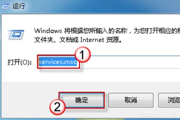 1、使用组合键“Win+R”调出运行命令框,键入命令services.msc,回车