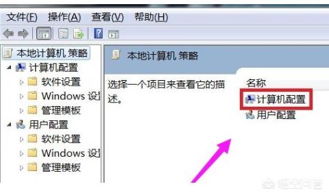 3、弹出“本地组策略编辑器”页面,在该页面的右边双击“计算机配置”。