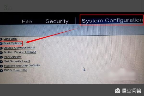 4、进入BIOS界面后,使用鼠标点击【SystemConfiguration】项下就可以看到BootOptions,点击进入。