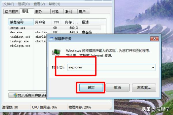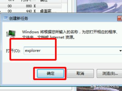 删除该程序会导致Windows图形界面无法使用;结束掉“explorer”进程,会直接导致系统的图形外壳和桌面文件消失;要恢复桌面图标的显示,只需要重启进程即可,方法如下:按“ctrl+alt+del",启动任务管理器;单击”文件“-”新建任务运行“,输入"explorer"并回车;此时,桌面图标和任务栏都恢复显示了。